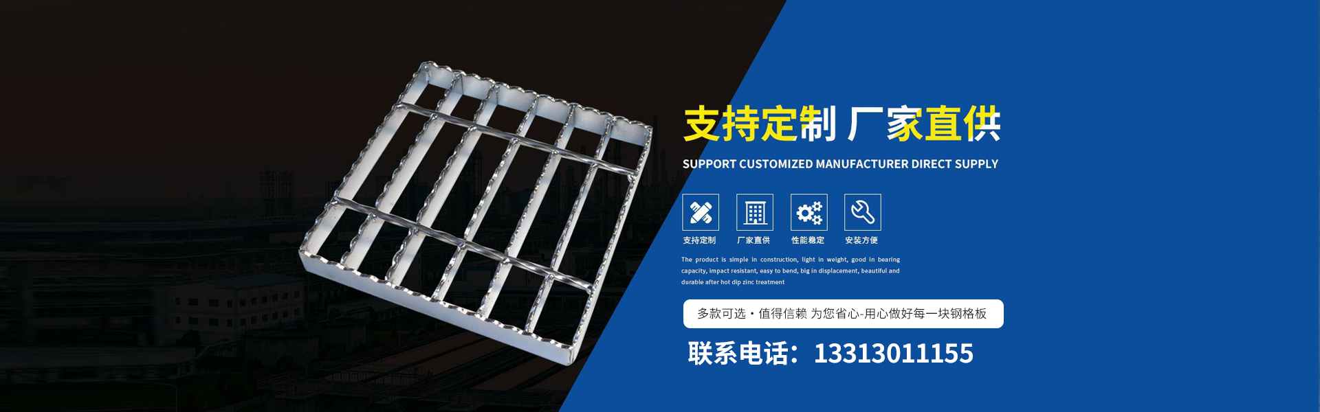 公司產品有鋼格板、踏步板、溝蓋板、鋼格柵板、等產品。對于客戶要求的不同工作環(huán)境,承載力、跨度、形狀和顏色,提供相應設計方案及成本控制。 我公司秉承“以客戶為中心,以低價高品質為基礎,以客戶滿意為目標”的經營理念,以優(yōu)惠的價格、好的技術設備來贏得用戶的信賴,衡水新超峰金屬網業(yè)制造有限公司熱誠歡迎廣大客戶光臨。 衡水新超峰金屬網業(yè)制造有限公司成立迄今,正是由于各界朋友們對于我們的持續(xù)支持與關懷,及本公司全體同仁辛勤的耕耘與付出,使公司持續(xù)發(fā)展與茁壯成長。展望未來,我公司人懷著感恩之心,更加追求...